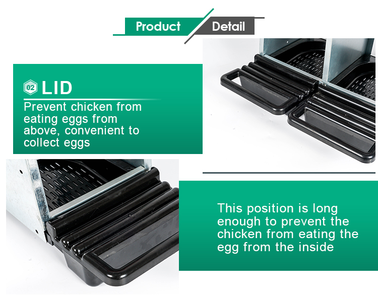 The laid eggs roll delicately in their receptacle and are then protected from dirt, they are also protected from pecks and therefore cannot be eaten. The eggs laid in these nests are not accessible by the hens and therefore cannot be brooded.