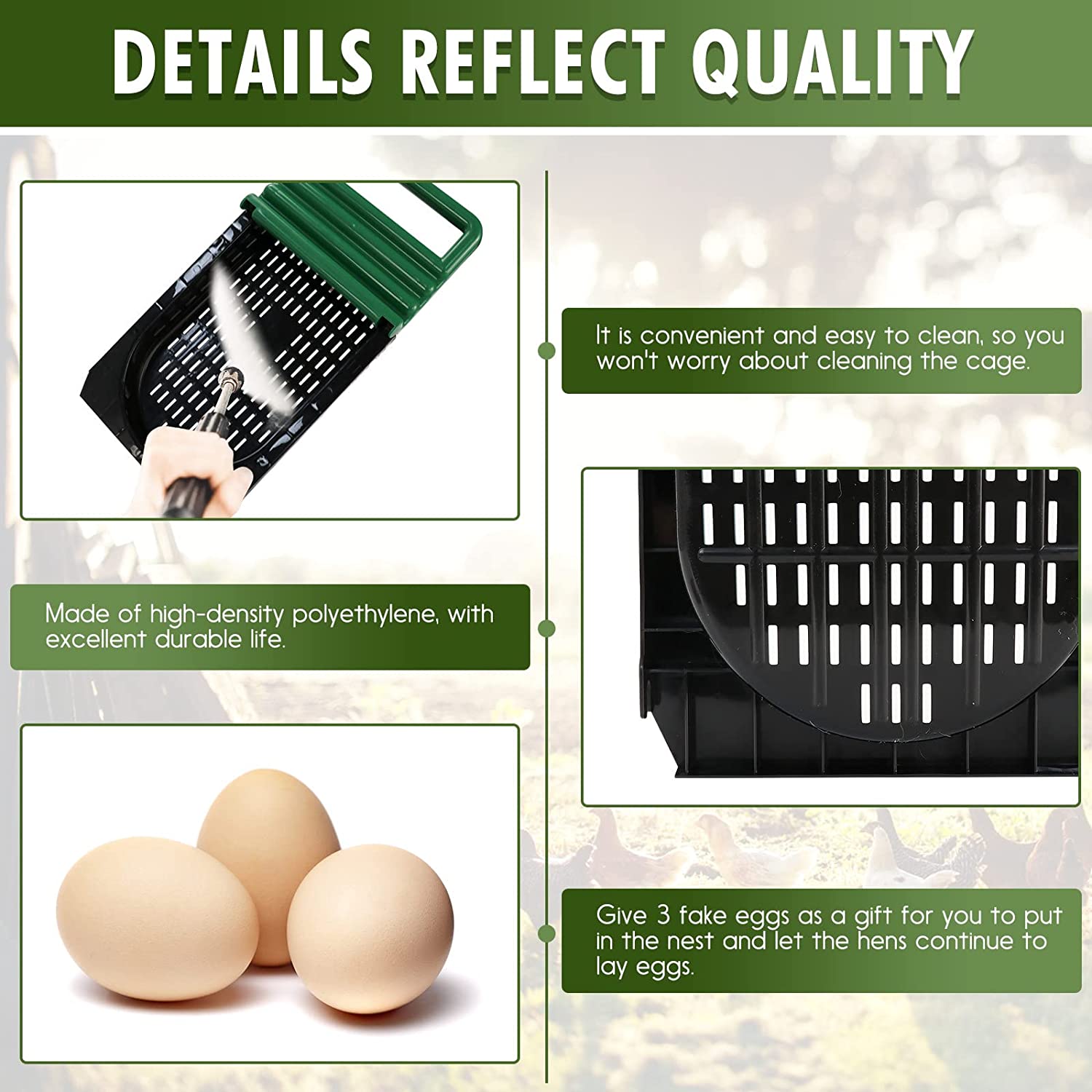 PROTECT YOUR EGGS: This rollaway metal nesting box has a unique design which encourages your precious eggs to roll forward underneath the secure lid where they will remain intact until you are ready to collect.
